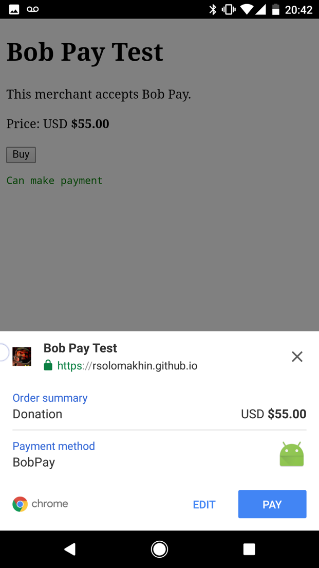 and initiating a demo payment request. No actual payment will be processed on the demo page.